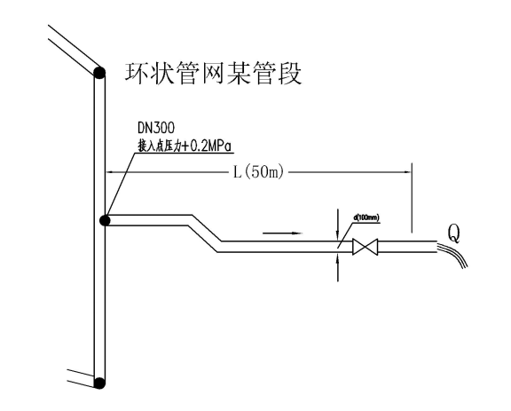 具體地談管網(wǎng)能力問題實(shí)際上是個(gè)體用戶的需求、管網(wǎng)能否滿足的問題。例如:某用戶申請(qǐng)供水,其居住小區(qū)有普通Ⅱ類住宅500戶,依建筑給水設(shè)計(jì)規(guī)范設(shè)計(jì)之秒流量(最大短時(shí)流量)為13L/S(47m3/h),根據(jù)地理位置應(yīng)在某管段上(例如DN300管)開口接出取水管。而該管段是否有能力滿足需要?實(shí)際上這是一個(gè)管網(wǎng)水力計(jì)算的問題。管網(wǎng)的拓樸結(jié)構(gòu)有環(huán)狀和枝狀類別之分,水力計(jì)算方法毋需贅述。管網(wǎng)水力計(jì)算題目對(duì)于管網(wǎng)經(jīng)常性管理工作較差的供水系統(tǒng),可能會(huì)因基礎(chǔ)數(shù)據(jù)和運(yùn)行數(shù)據(jù)不足,解題時(shí)有些困難。這可以通過(guò)測(cè)壓、測(cè)流、試驗(yàn)等工作來(lái)獲取數(shù)據(jù),并逐步使管網(wǎng)管理工作科學(xué)、正規(guī)地完善起來(lái)。